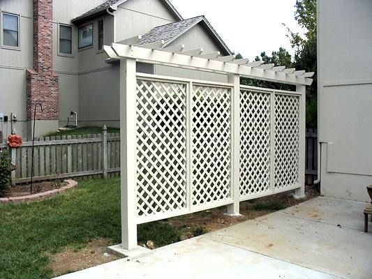 A comfortable outdoor privacy wall, seating location is brightened by LED string lights in a contemporary yard. A high privacy wall fence produces a sense of privacy under the shade of trees initial to the area.